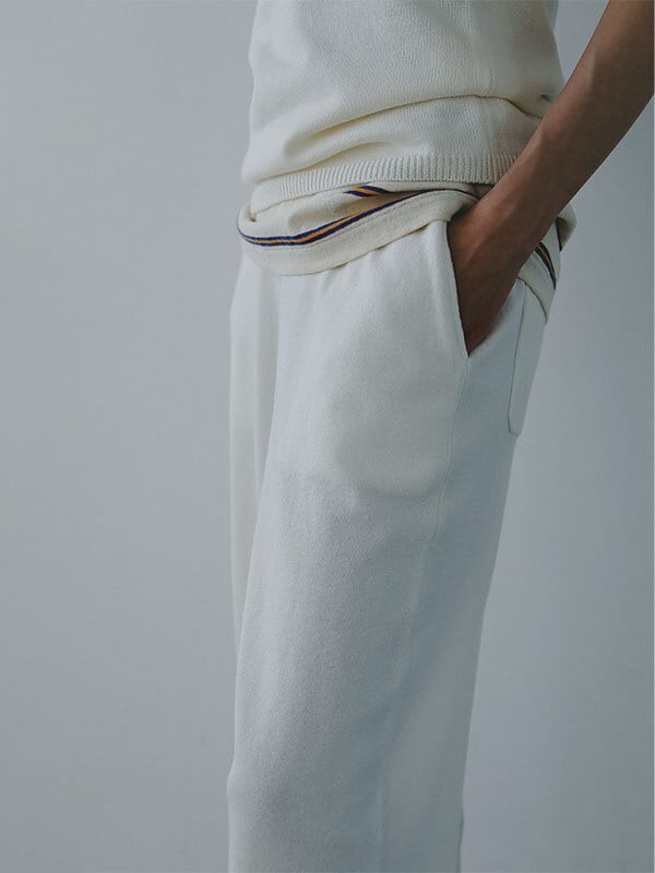 スウェットパンツのようなカジュアルなデザインで、リラックス感がありつつも上品な印象を纏います。