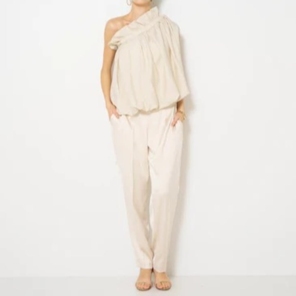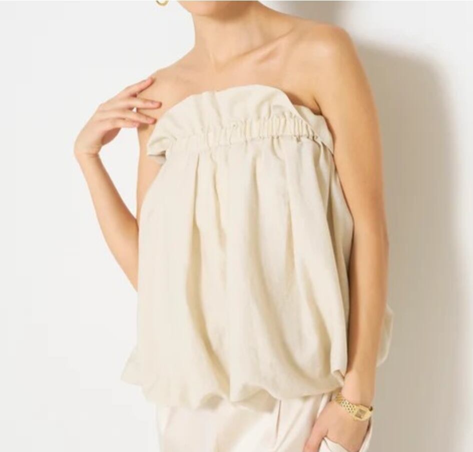 オフショルダーにせずそのまま着ると衿元が華やかなノースリーブTOPS