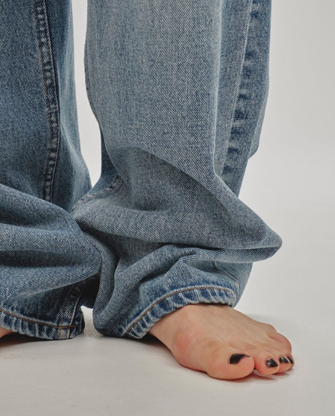 ストレートラインで全体的にゆるっとしたルーズ感のあるシルエットが魅力のデニム。腰履きで履いていただくのがおすすめです。生地端を贅沢に使用しているため、裾を折り返しても履いていただけるよう、少し長めの着丈にしています。シーズンムードたっぷりなブルーとグレーの2色展開。