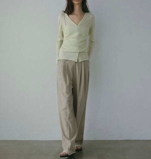 シルエットの美しさが際立つ、タック入りのワイドパンツ。