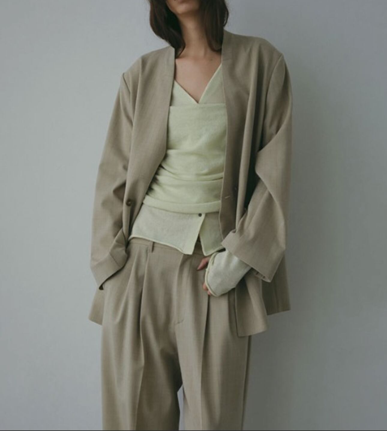 優しいトーンながらも立体感があり、ワントーンコーデに奥行きを出してくれます。