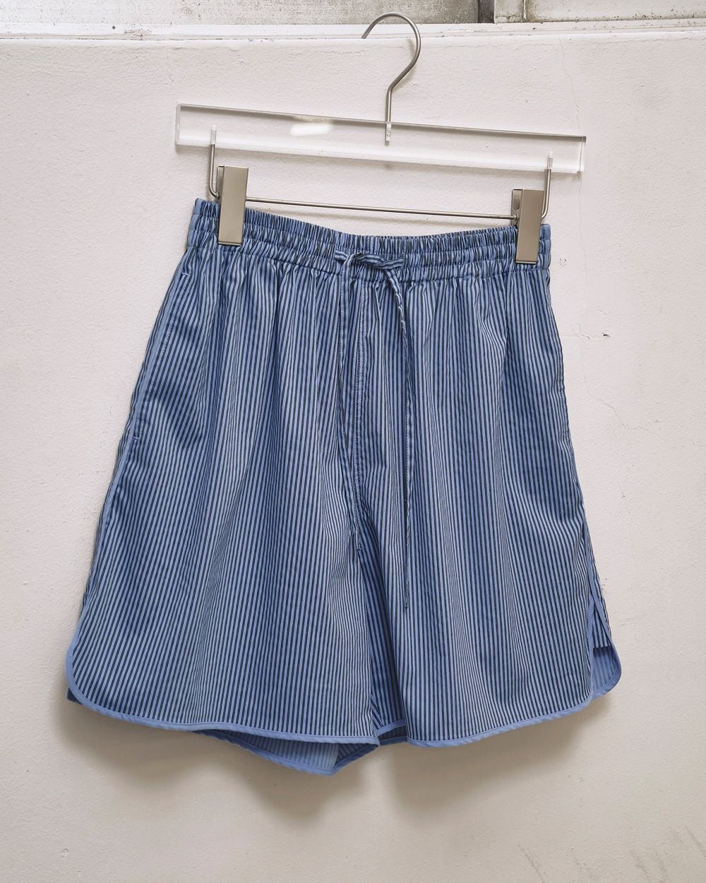 軽やかな履き心地のハーフパンツに新色が加わりました。オリジナルの配色で仕上げたストライプ生地が魅力。リラックス感のあるメンズライクなシルエットは、ソックスやブーツを合わせ、肌見せを取り入れることで女性らしい雰囲気に。カラーによってストライプ柄の幅が異なります。