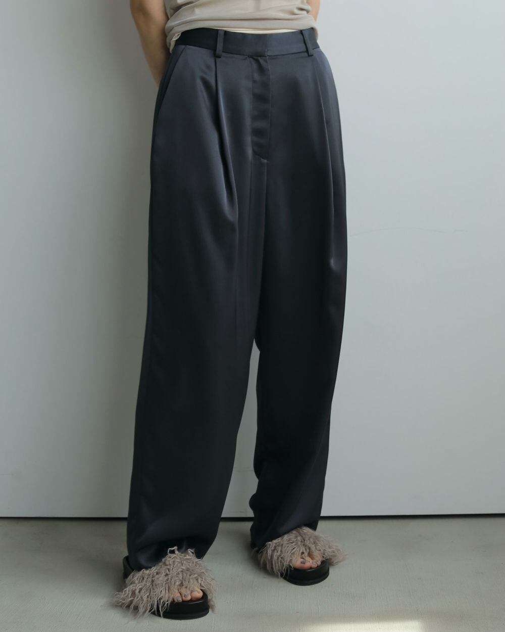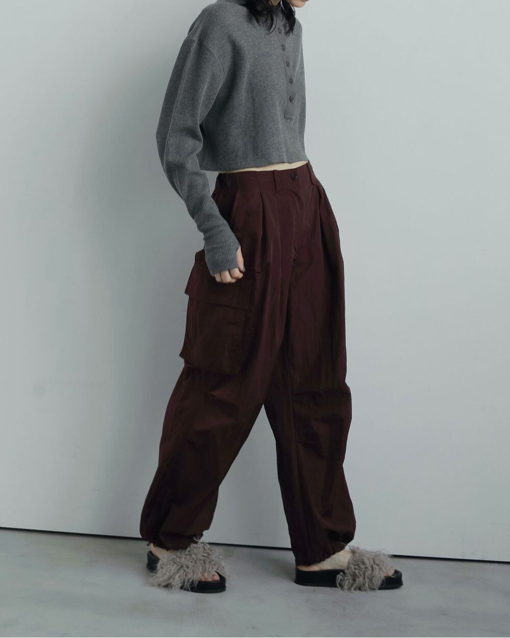 ミンクファーのようなウェーブがかかった毛足の長いエコファーを使用したボリュームサンダル。暑さの残る時期から、秋の気分を一気に添えてくれます。ふわふわと柔らかくボリュームあるエコファーで、足元が華やぎ、シンプルなスタイリングのポイントとしても映えてくれます。素足ではもちろん、秋本番はソックス合わせで履いていただいても可愛いです。