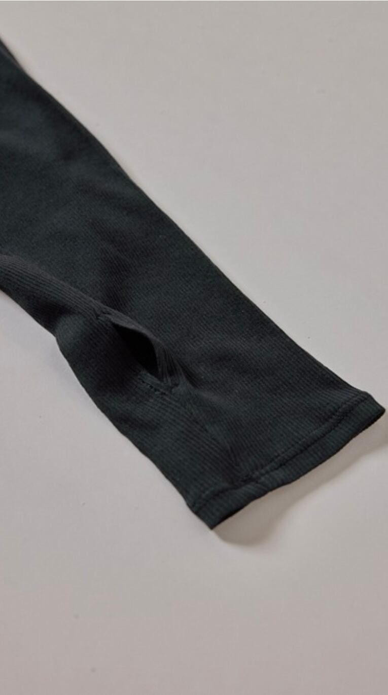 指を通していただくと低身長の方もずり落ちてくることなく着用していただけます。