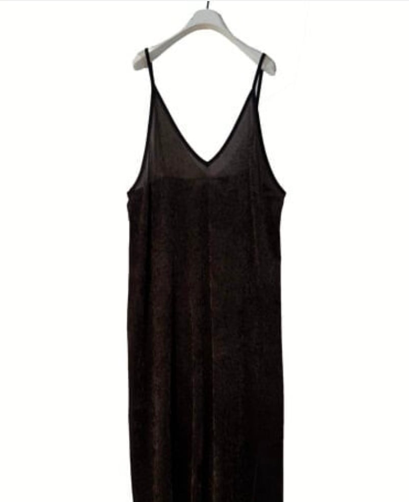 程よい透け感が特徴のメッシュのベロア素材のキャミワンピースになります。