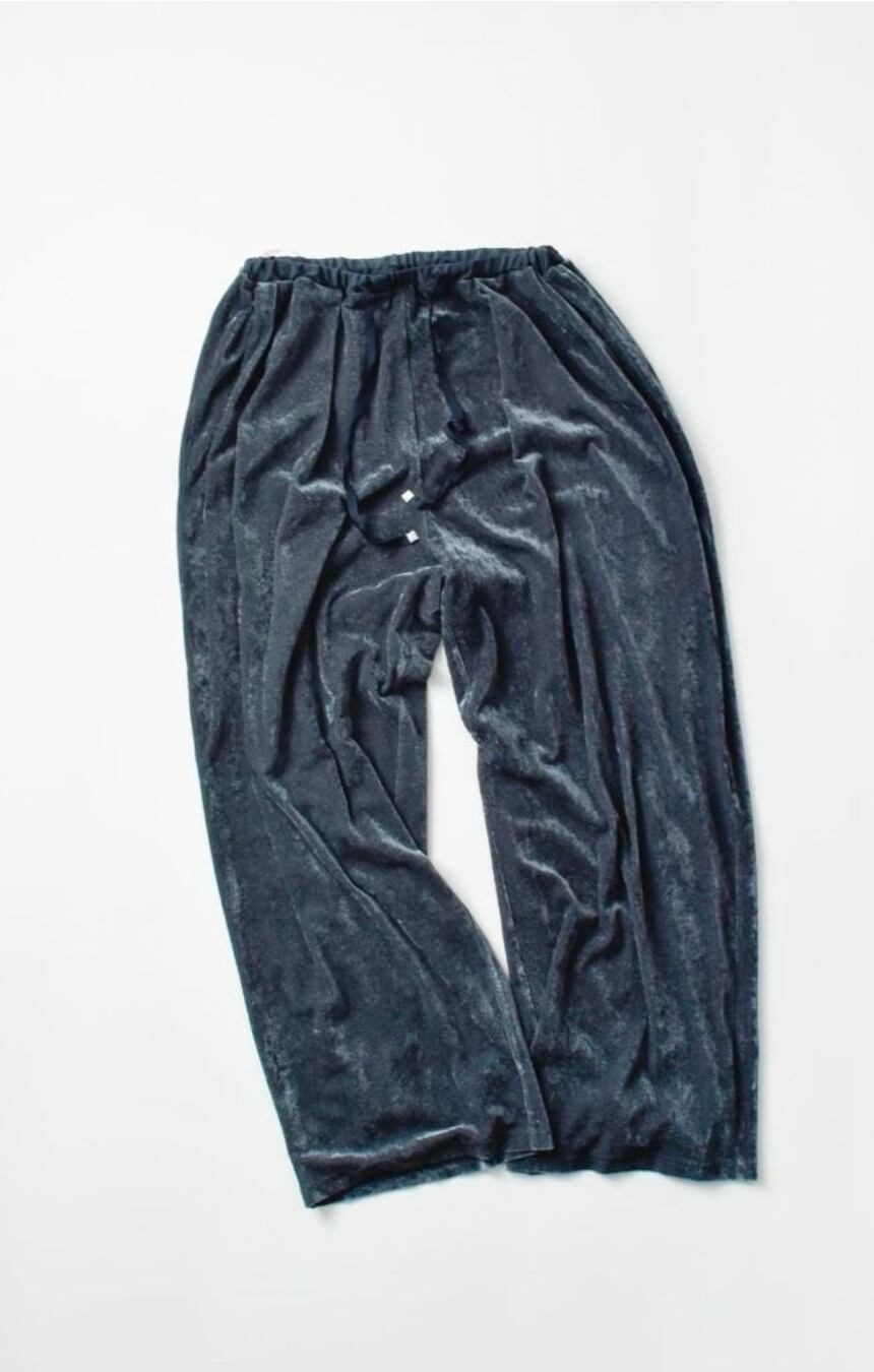 光沢と透け感が美しいベロアメッシュ素材を使用した、大人の雰囲気漂う一本。ゆとりのあるワイドシルエットに、タックを施すことで、体のラインを拾いすぎず程よく構築的な印象に。ウエストはイージー仕様で、内側のドローストリングでサイズ調節が可能。サラリとした肌触りのある裏地にも伸縮性があるため、見た目以上に快適な穿き心地を実現します。Tシャツでカジュアルダウンしても、シャツやジャケットでシックに決めても、主役になる存在感。シーズンの変わり目に最適な一本です。