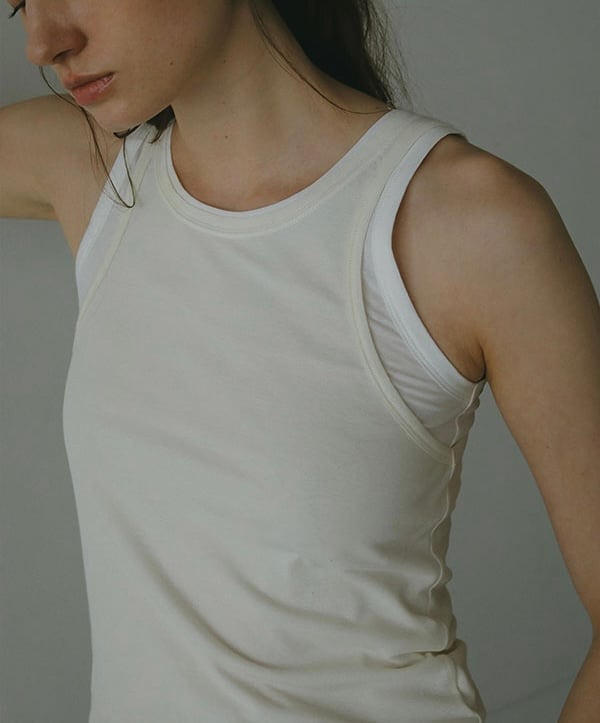 レイヤードデザインが今季らしいカットタンクトップ。